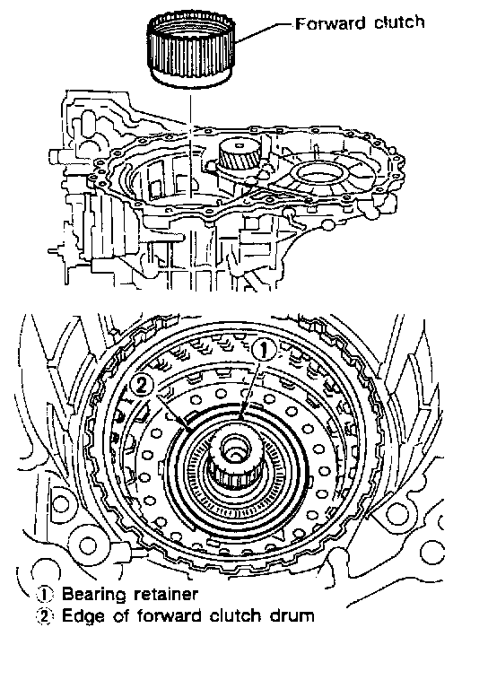 - If forward clutch assembly is correctly seated, points (1) and (2) are at almost same level.