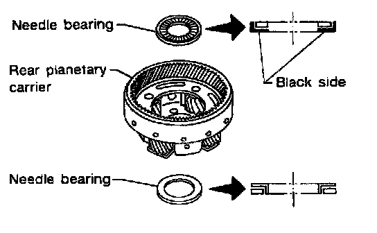 12. Install thrust needle bearing on front planetary carrier, then install them together on transmission case.
