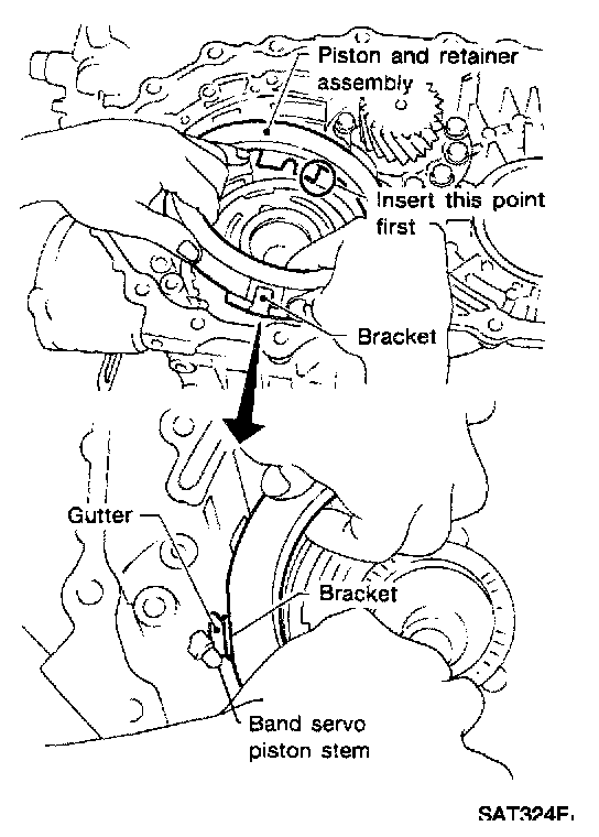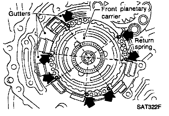 a. Set and align return springs to transmission case gutters as shown in illustration.