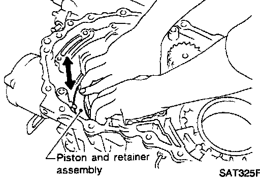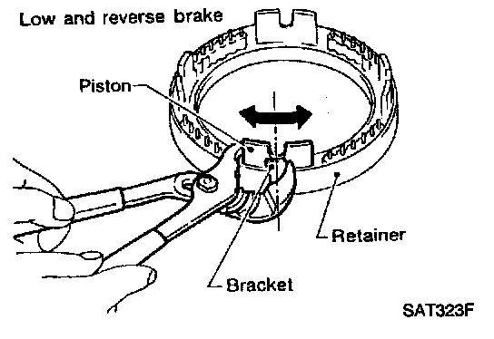 - If they can not move smoothly, remove piston and retainer assembly and align return spring correctly as instructed in step "a".