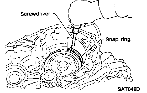 - Forward clutch and bearing must be correctly installed for snap ring to fit into groove of transmission case.