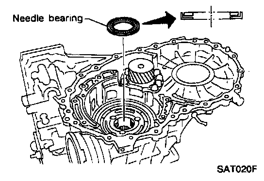 16. Install needle bearing on transmission case.