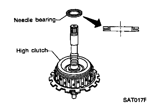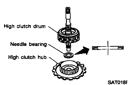 18. Install needle bearing and high clutch drum on high clutch hub.