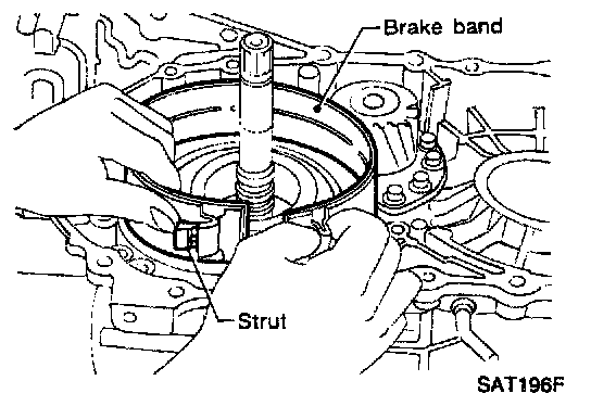 2. Place brake band on outside of reverse clutch drum. Tighten anchor end pin just enough so that brake band is evenly fitted on reverse clutch drum.