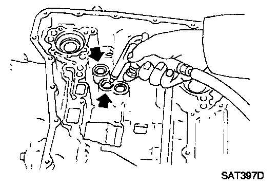 9. Apply compressed air to oil holes of transmission case and check operation of brake band.