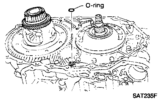 12. Install O-ring on differential oil port of transmission case.