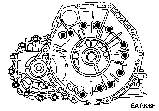 - Apply locking sealant (Loctite #518) to mating surface of converter housing.