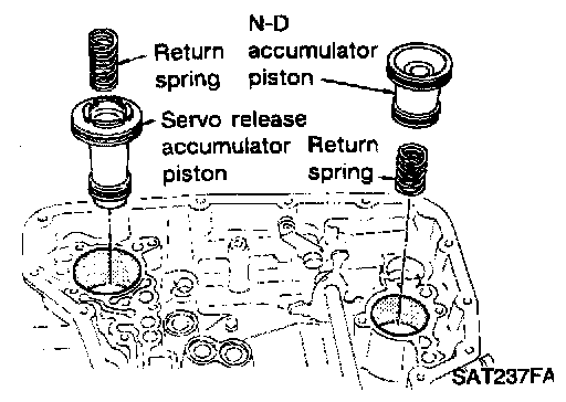c. Install accumulator pistons and return springs on transmission case.