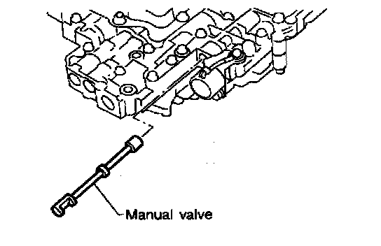 c. Install control valve assembly on transmission case while aligning manual valve with manual plate.
