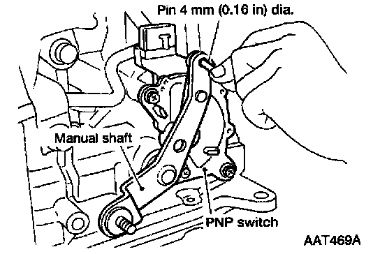f. Remove pin from adjustment hole after adjusting park/neutral position (PNP) switch.