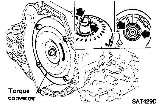 b. Install torque converter while aligning notches of torque converter with notches of oil pump.