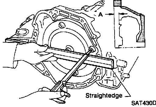 c. Measure distance "A" to check that torque converter is in proper position.