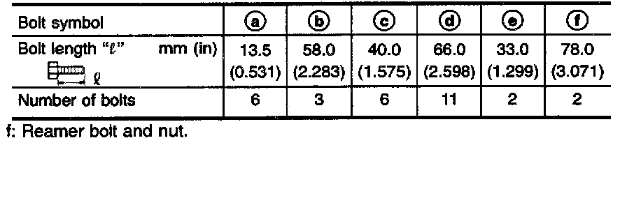 d. Reinstall reamer bolts (f) from lower body side.
