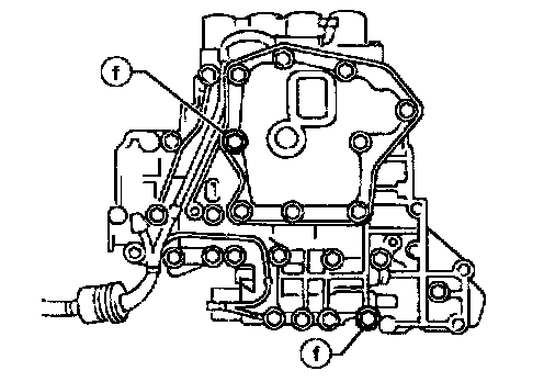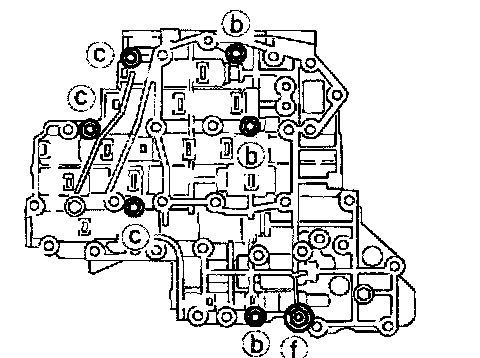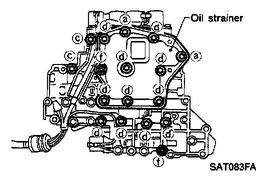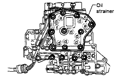 a. Remove bolts (a), (d) and (f) and remove oil strainer from control valve assembly.