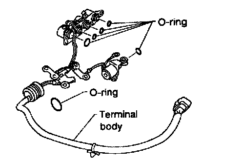 c. Remove O-rings from solenoid valves and terminal body.