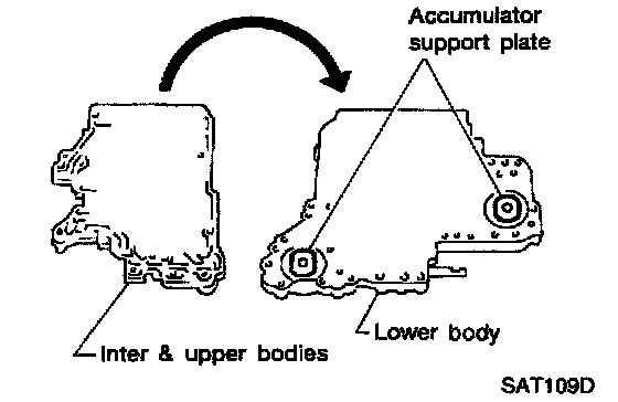 f. Turn over lower body, and remove accumulator support plate.