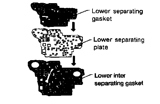 h. Install lower separating gasket, lower inter separating gasket and lower separating plate in order shown in illustration.