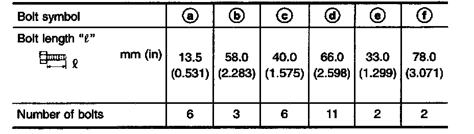 e. Tighten bolts (a), (c), (d) and (f) to specified torque.