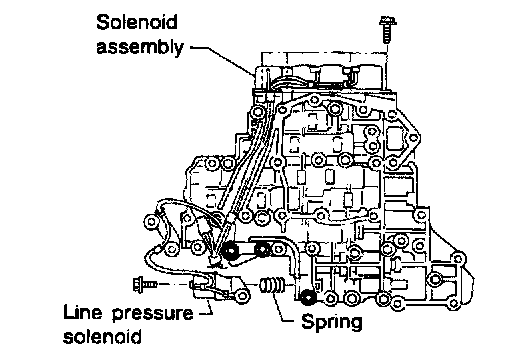 b. Remove solenoid valve assembly and line pressure solenoid valve from control valve assembly.