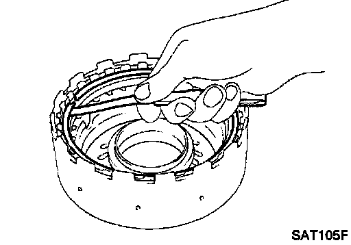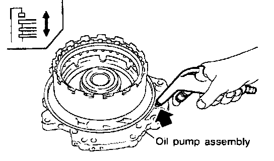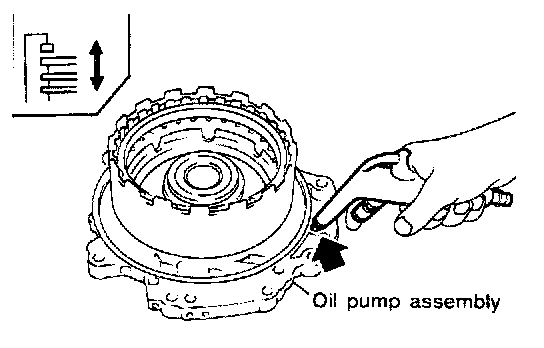 a. Install seal ring onto drum support of oil pump cover and install reverse clutch assembly. Apply compressed air to oil hole.