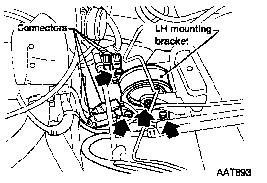 6. Remove LH mounting bracket from transaxle and body.