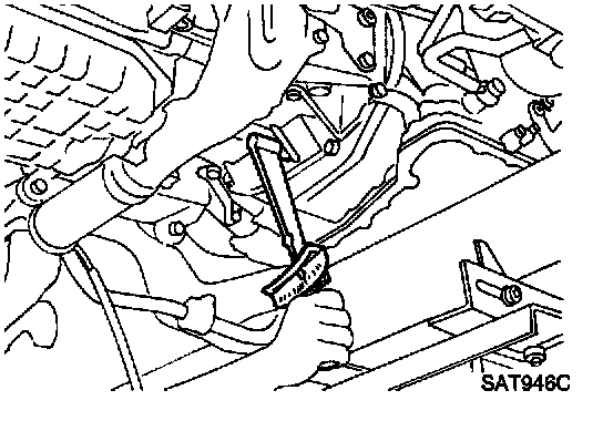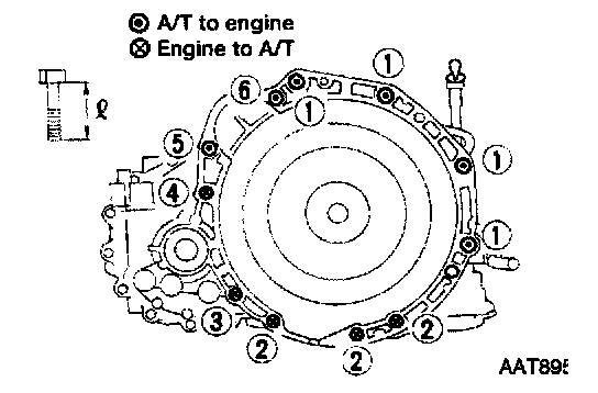 16. Remove bolts fixing A/T to engine.