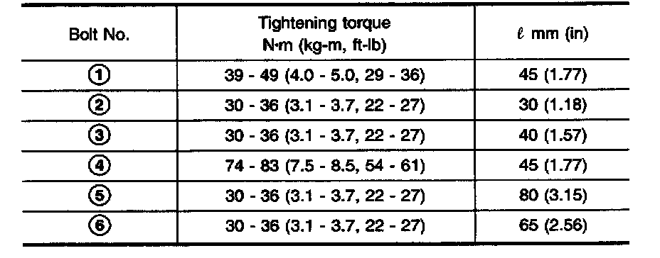 Tighten center member bolts to the specified torque.