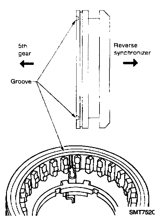 - Put insert spring mounts on reverse baulk ring upon those on 5th baulk ring.