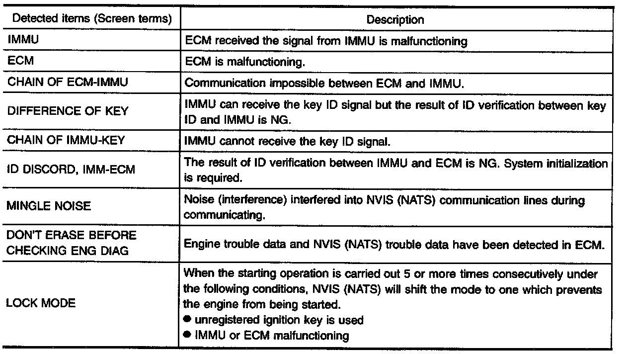 SELF-DIAGNOSTIC RESULTS ITEM CHART
