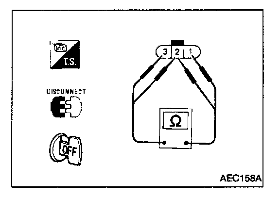 NOTE: If "DIAGNOSTIC TROUBLE CODE CONFIRMATION PROCEDURE" has been previously conducted, always turn ignition switch "OFF" and wait at least 5 seconds before conducting the next test.
