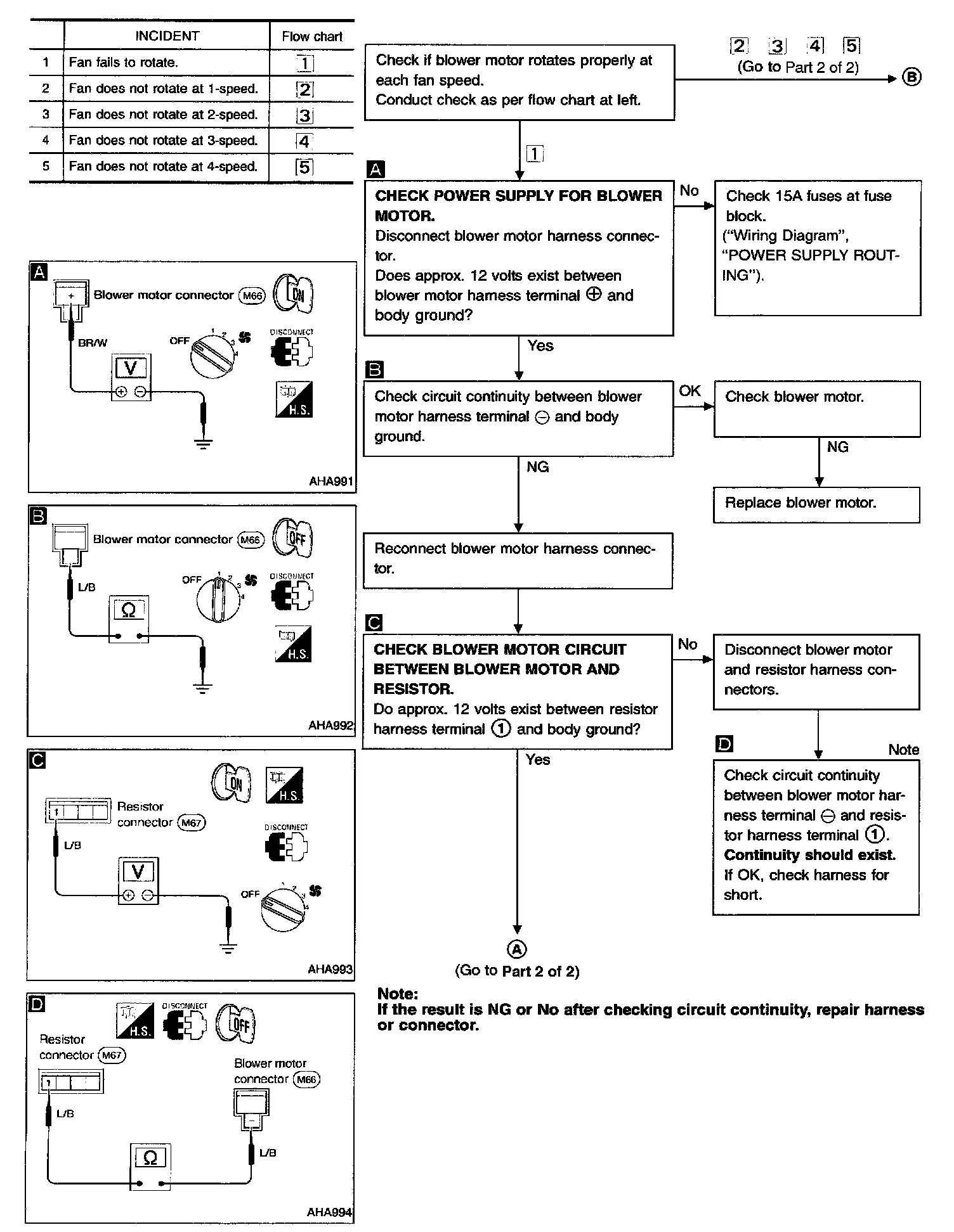 SYMPTOM: Blower motor does not rotateINSPECTION FLOW