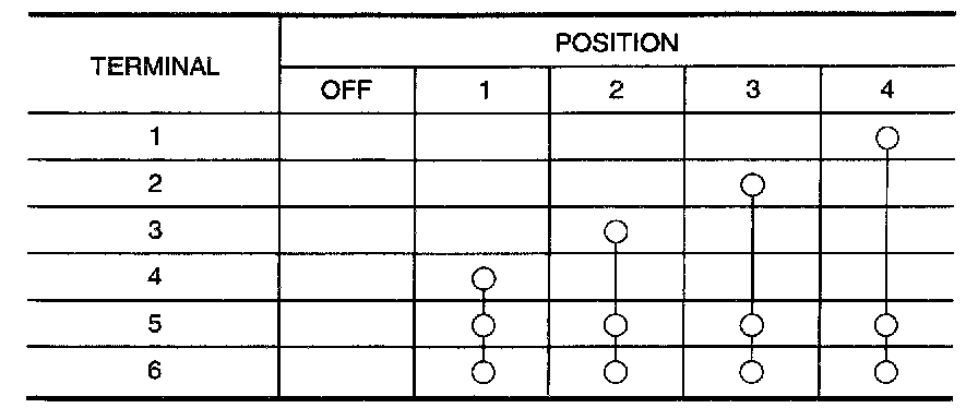Check continuity between terminals at each position.