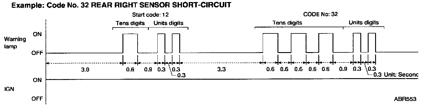 - Determine the code No. by counting the number of times the warning lamp flashes on and off. When several malfunctions occur at one time, up to three code numbers can be stored; the latest malfunction will be indicated first.