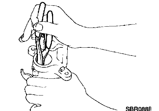 9. With piston boot fitted to piston, insert piston boot into groove on cylinder body and fit piston by turning it clockwise with long nose pliers or commercial service tool.