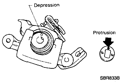 3. Match protrusion on key plate with depression in cylinder.