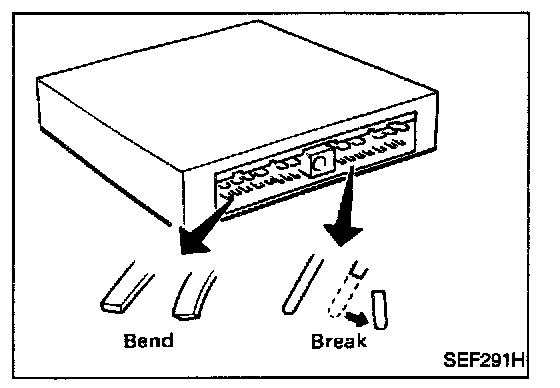 - When connecting or disconnecting pin connectors into or from ECM, take care not to damage pin terminals (bend or break).