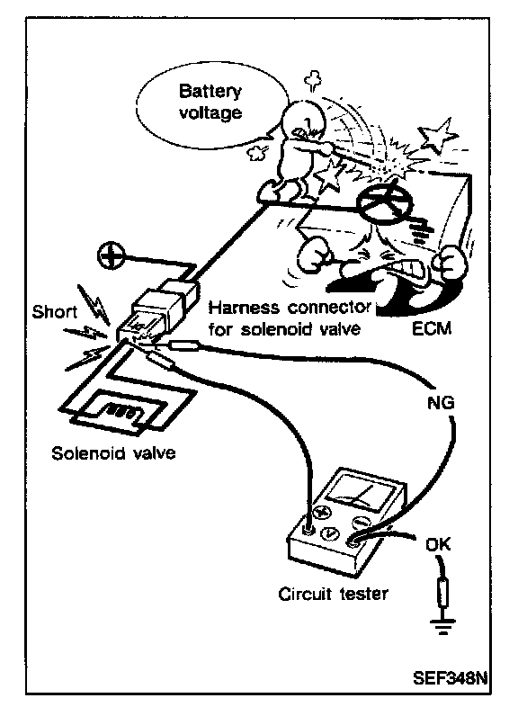 - When measuring ECM signals with a circuit tester, never allow the two tester probes to contact. Accidental contact of probes will cause a short circuit and damage the ECM power transistor.