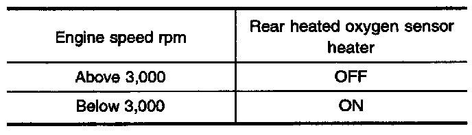 The ECM performs ON/OFF control of the rear heated oxygen sensor heater corresponding to the engine speed.