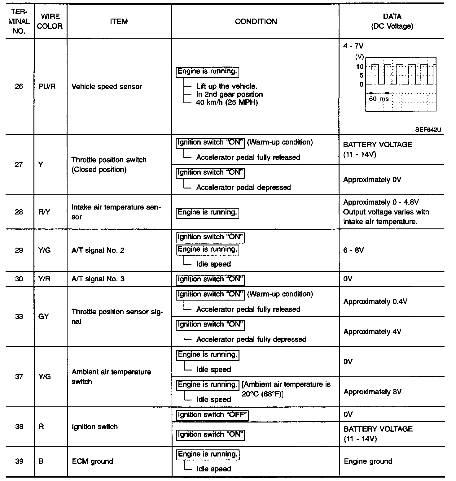 Specification data are reference values and are measured between each terminal and (43) (ECM ground).