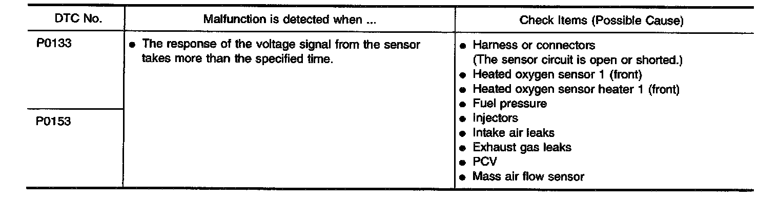 P0133 - P0153: