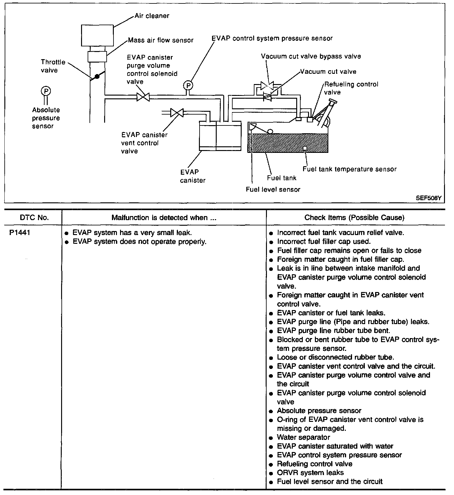 - If DTC P1441 is displayed with P0440, perform TROUBLE DIAGNOSIS FOR DTC P1441 first.