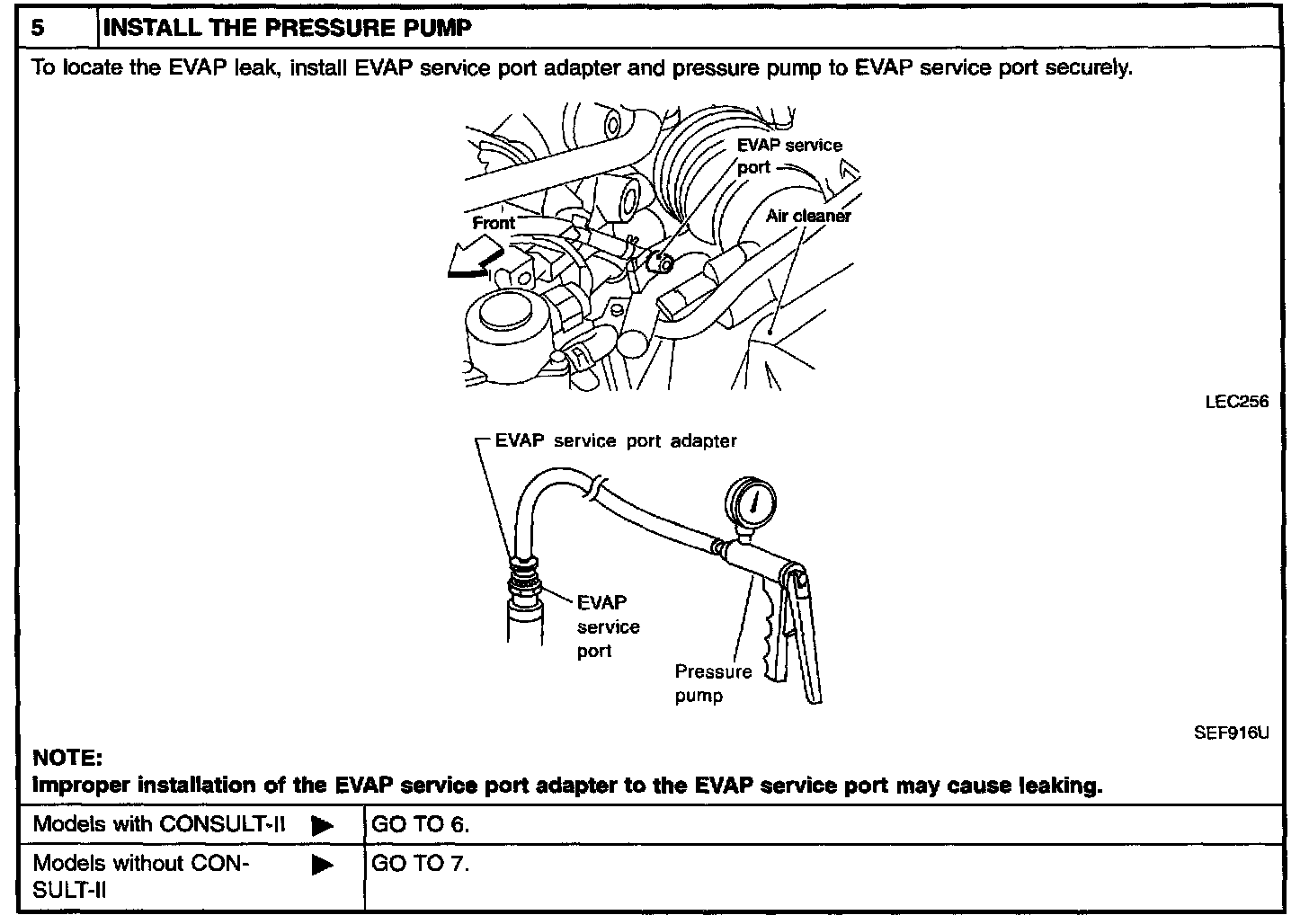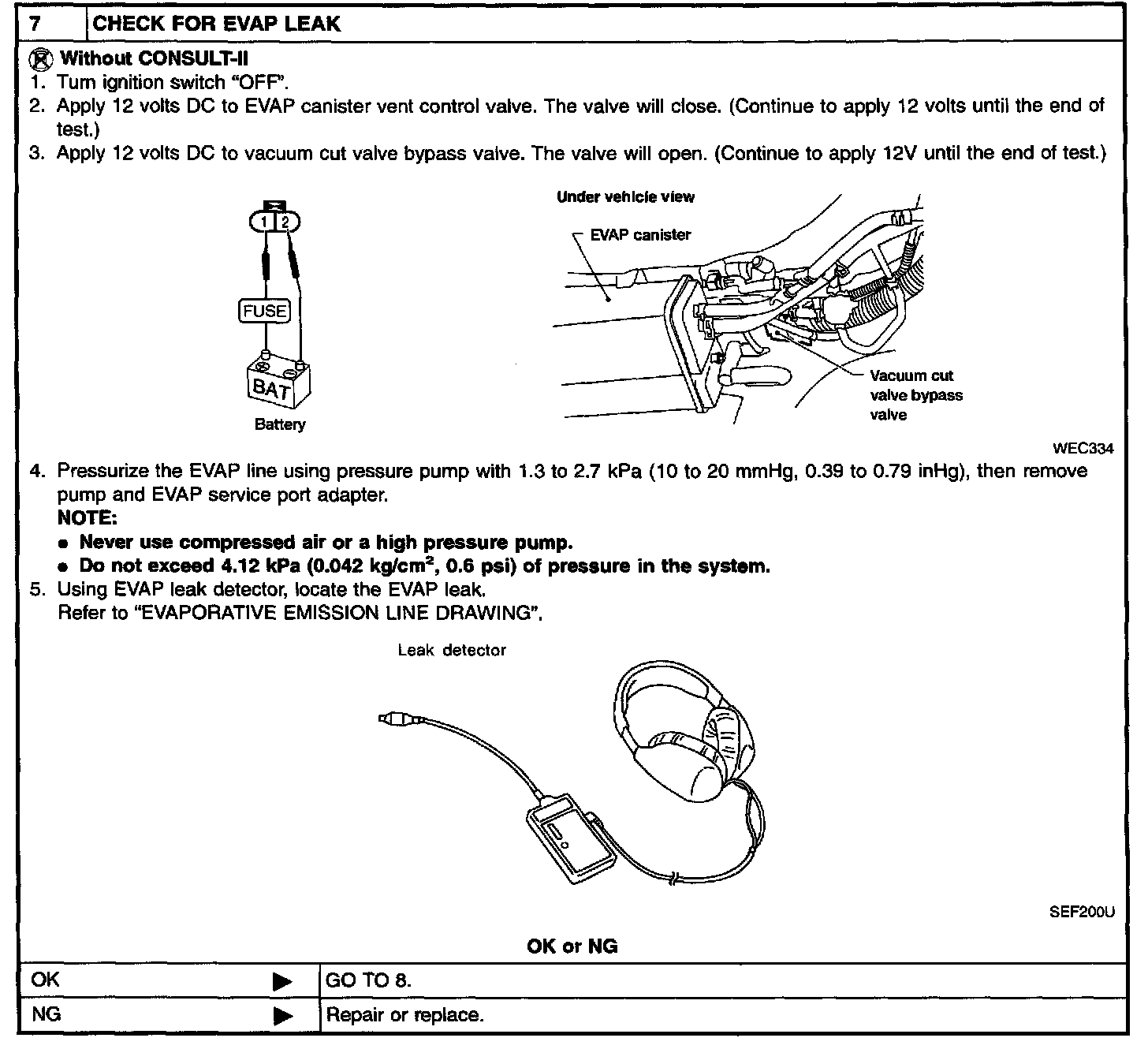 - Never use compressed air, doing so may damage the EVAP system.