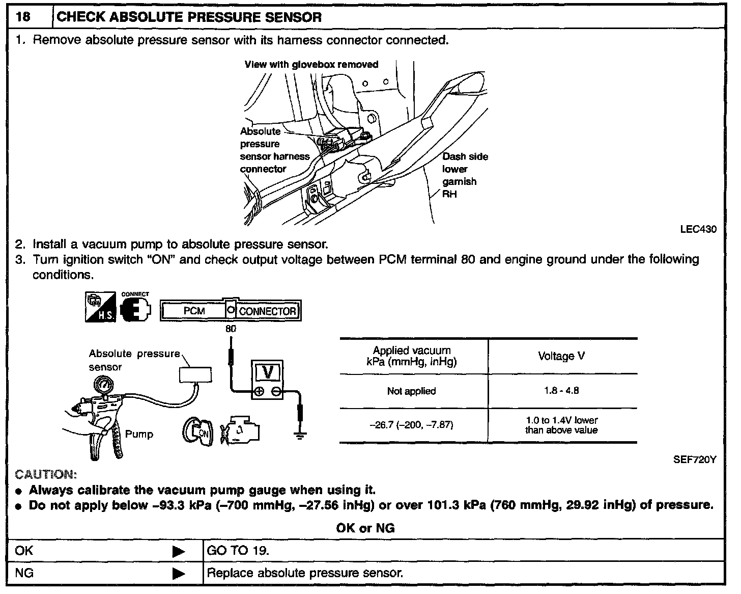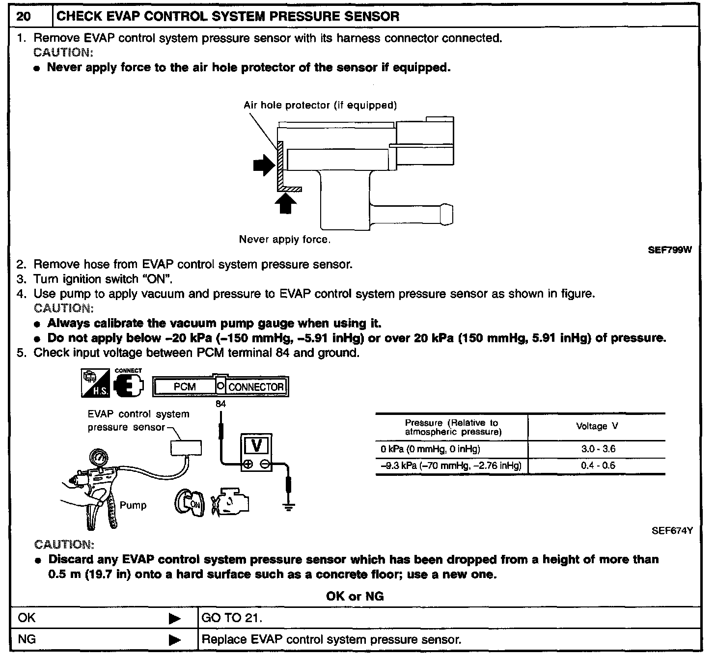 Time to be waited after the pressure drawn in to the EVAP system and the pressure to be dropped: 60 seconds and the pressure should not be dropped more than 0.4 kPa (3 mmHg, 0.12 inHg).