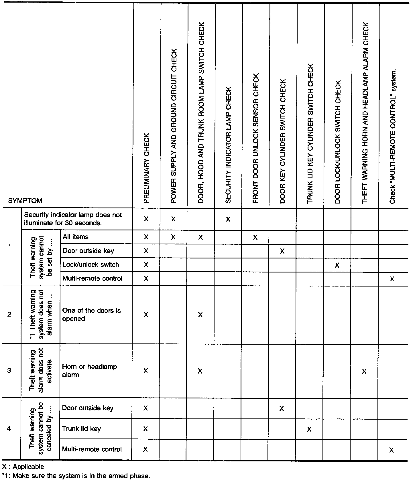 THEFT WARNING HORN AND HEADLAMP ALARM CHECK