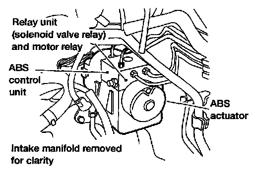 This component controls the hydraulic circuit and increases, holds or decreases hydraulic pressure to all or individual wheels. The ABS actuator and electric unit is serviced as an assembly.