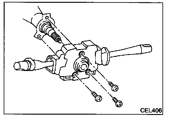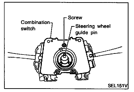 - Before installing the steering wheel, align the steering wheel guide pins with the screws which secure the combination switch as shown in the figure.