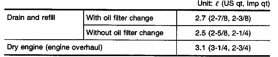 - The refill capacity depends on the oil temperature and drain time. Use these specifications for reference only. Always use the dipstick to determine when the proper amount of oil is in the engine.