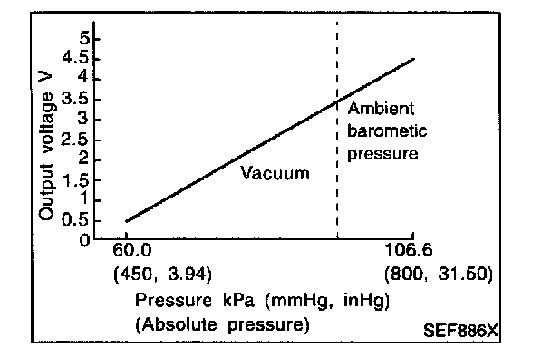 The absolute pressure sensor detects ambient barometric pressure and sends the voltage signal to the PCM. As the pressure increases, the voltage rises.