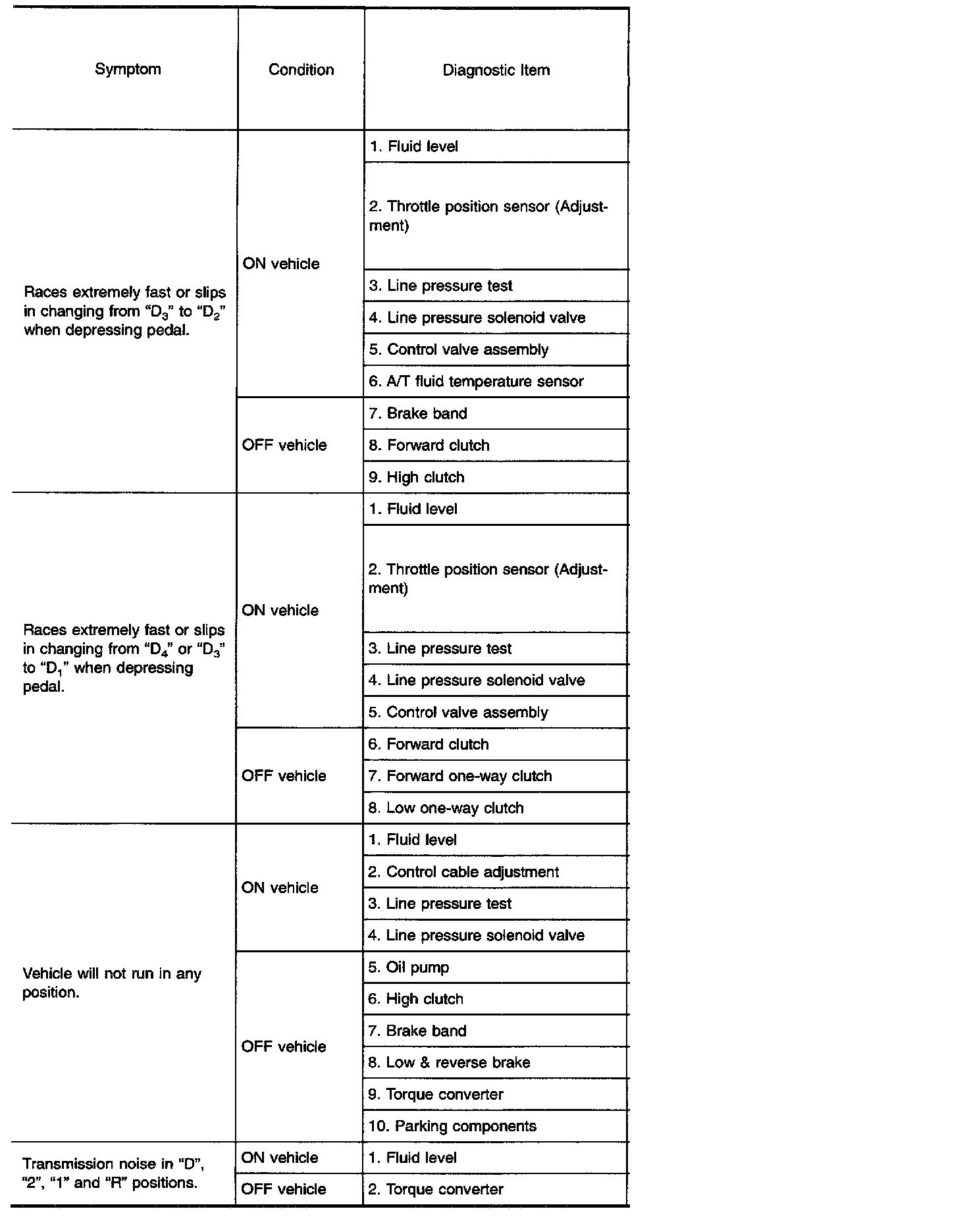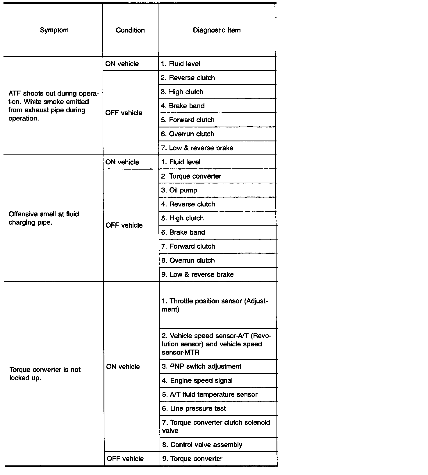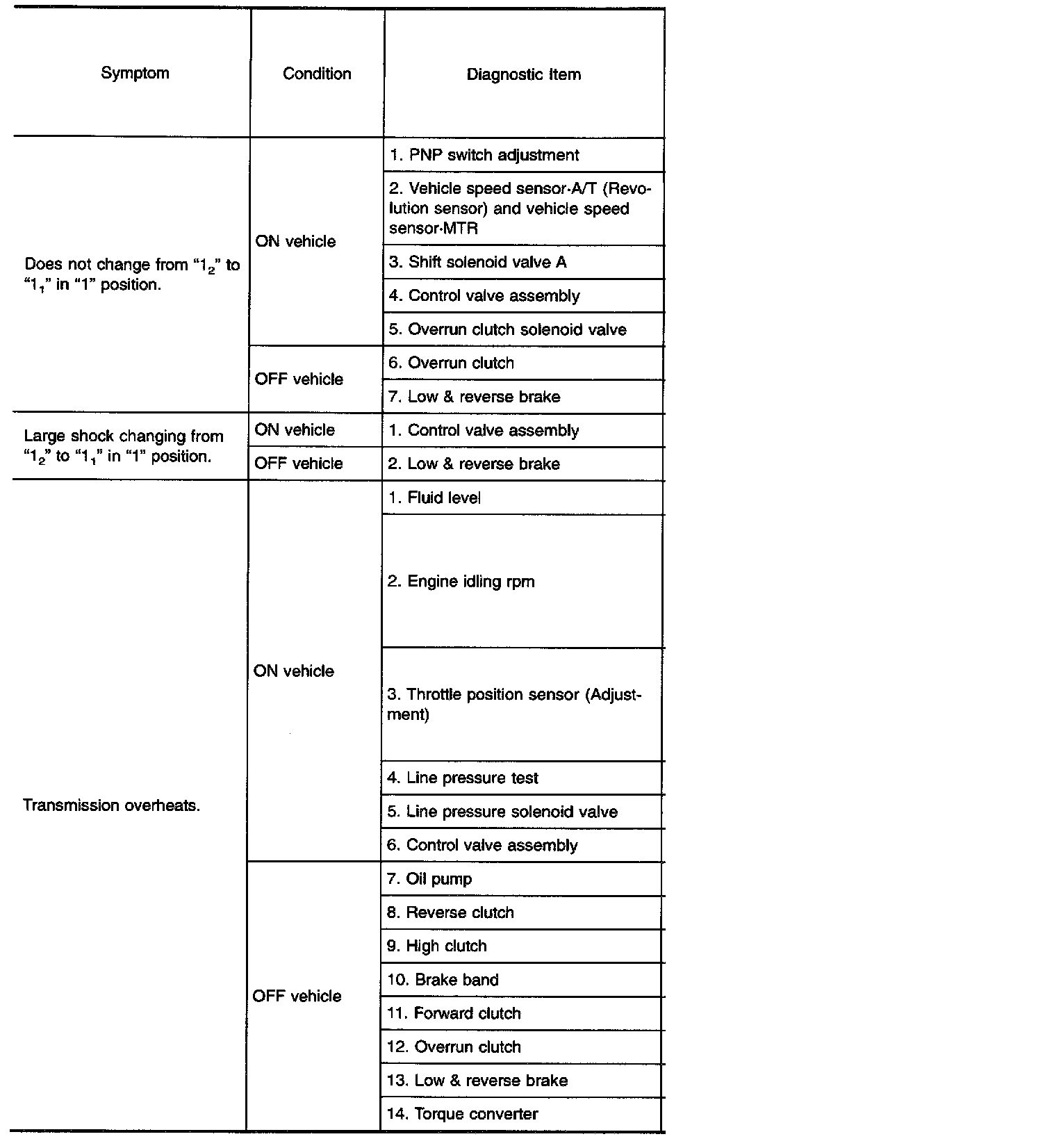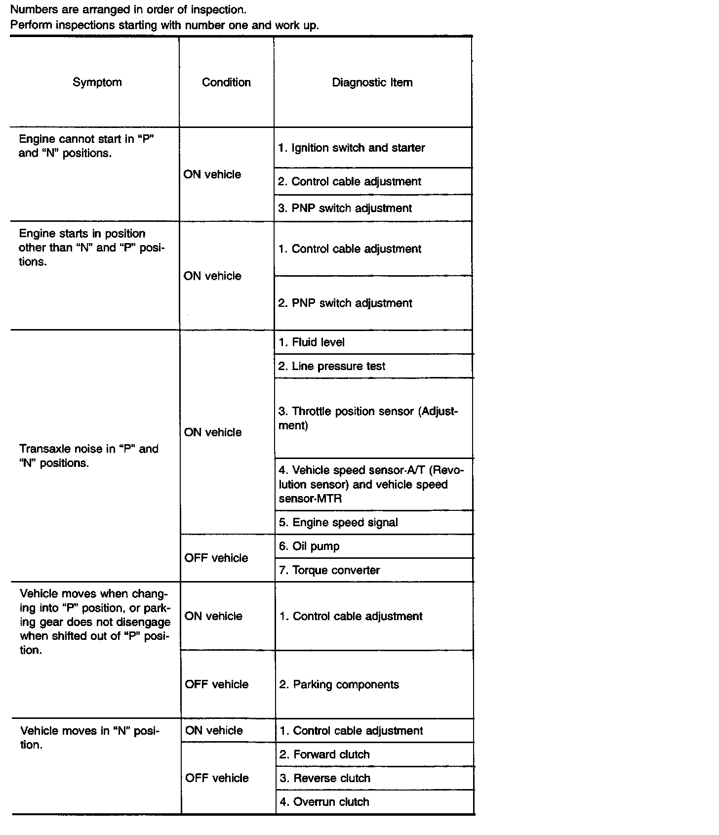Diagnostic item Nos. in OFF vehicle indicate that the transmission must be removed for the inspection.