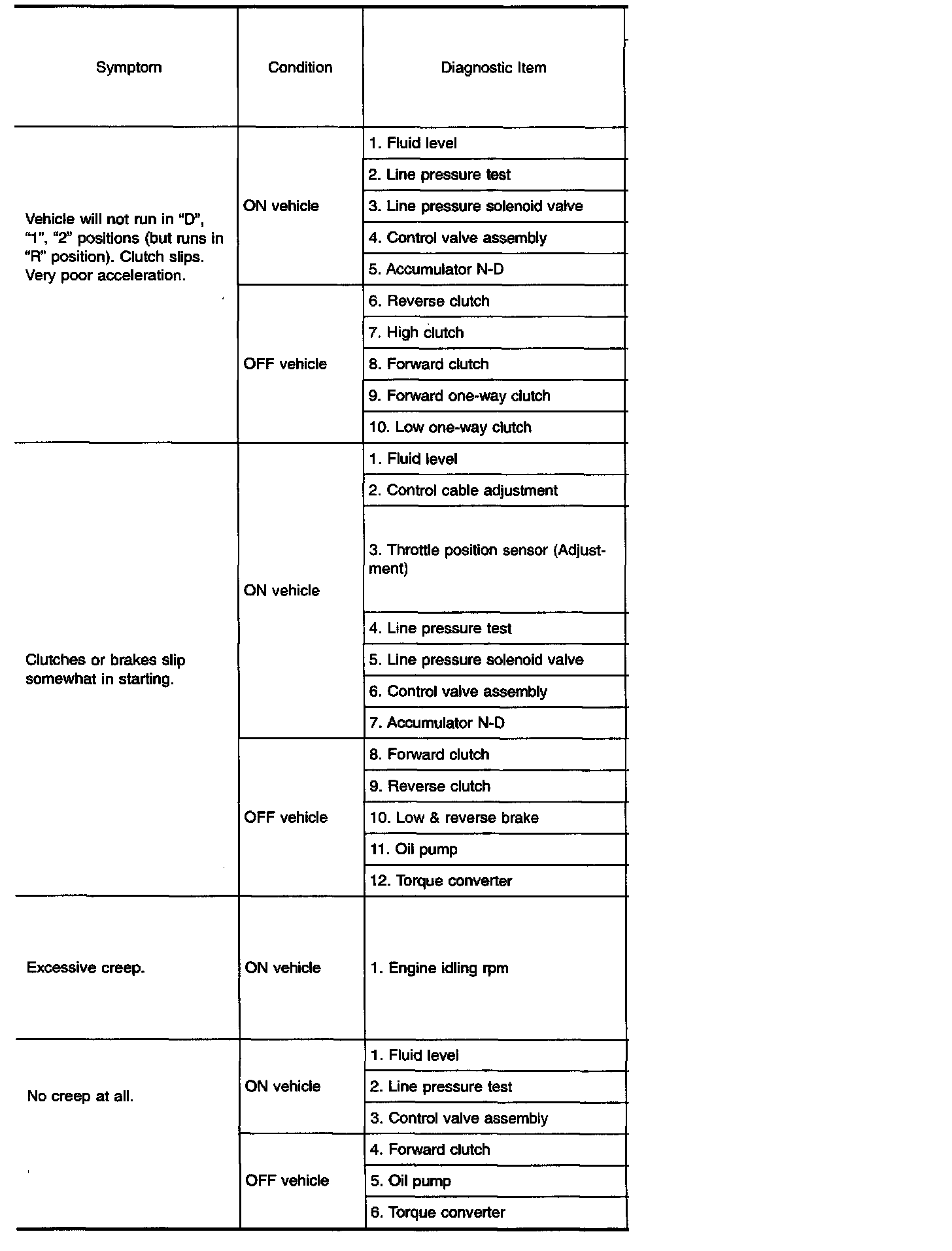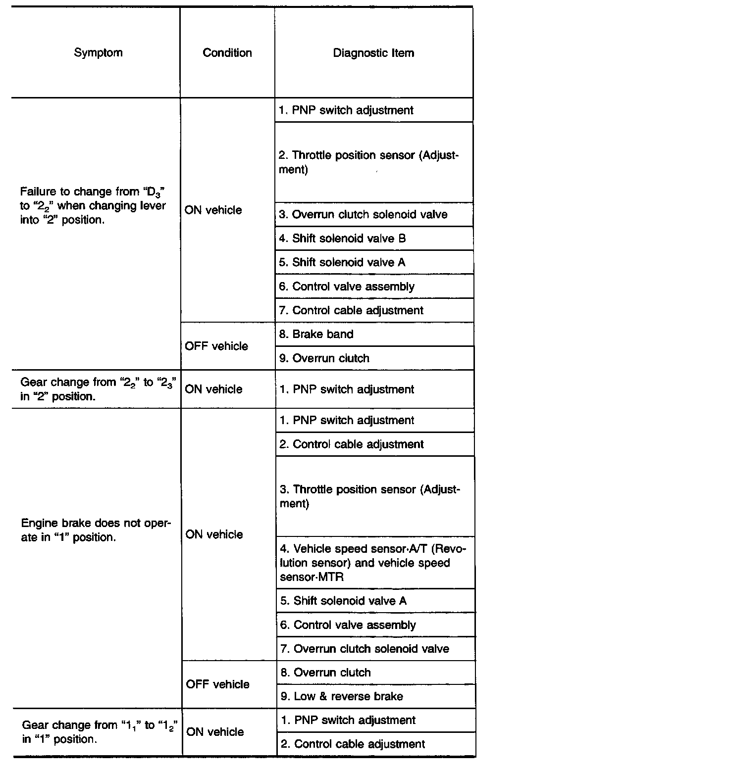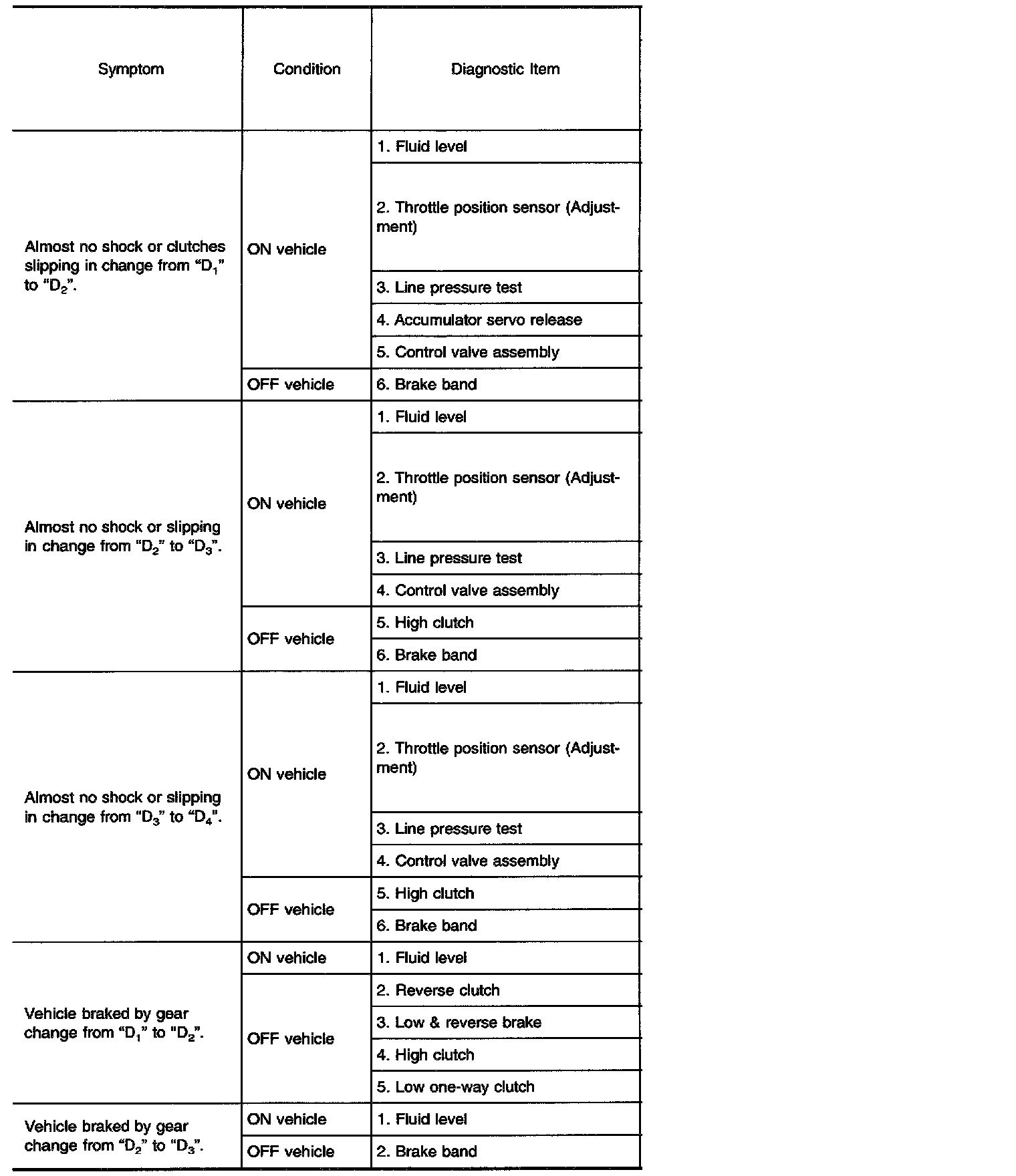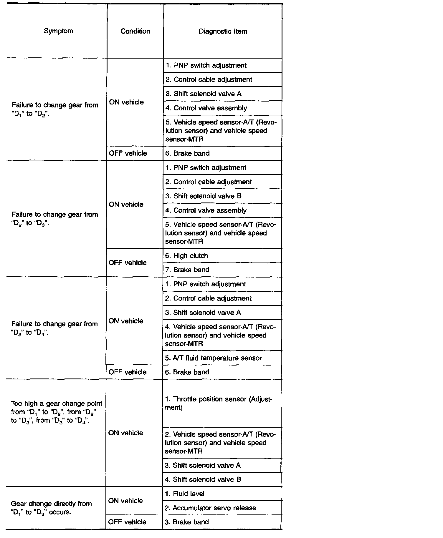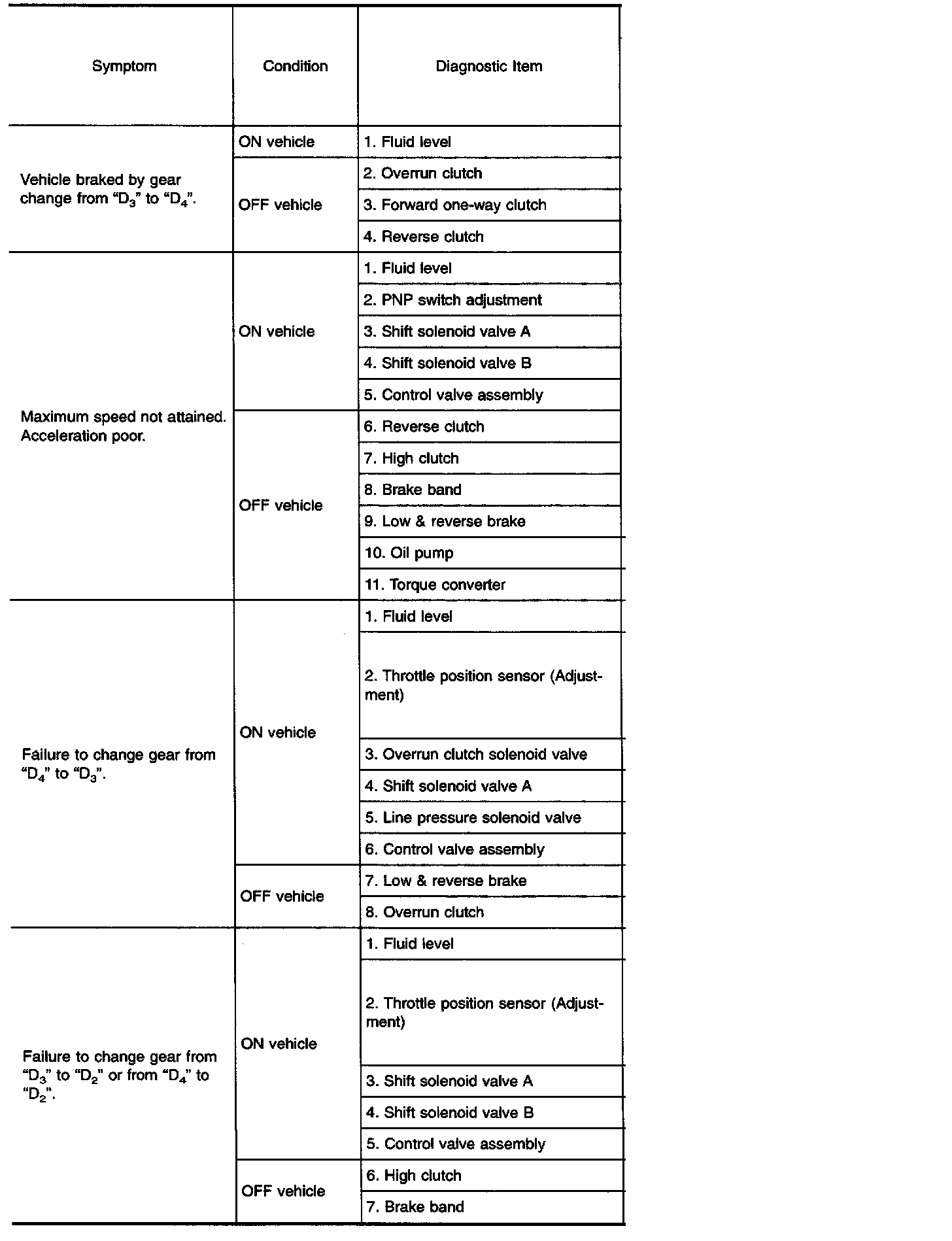 Diagnostic item Nos. in OFF vehicle indicate that the transmission must be removed for the inspection.